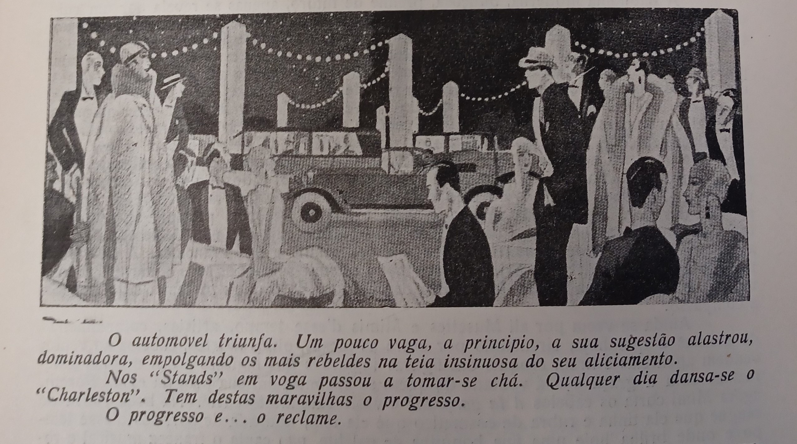 Num pequeno apontamento que faz alusão ao triunfo dos automóveis e do estatuto social que ficou conotado com os estabelecimentos que os comercializam, o autor faz uso do anglicismo "stands".